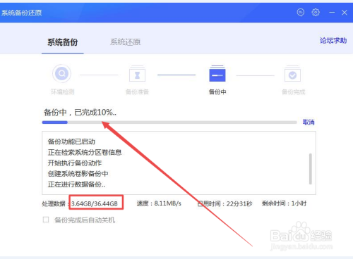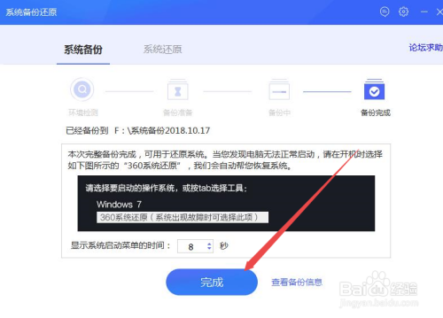 一会之后,就起头建立需要的文件了,建立完当作之后,就起头备份了,备份所需的时候,会按照系统的大小以及它的读写速度来决议,而不是适才提醒的时候,备份完当作之后,按照现实需要设置要显示的时候,点击 完当作 即可。