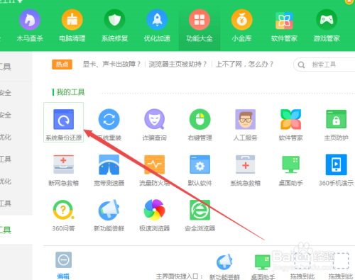 然后在打开的功能年夜全选项卡页面中找到 系统备份还原 选项,点击添加。