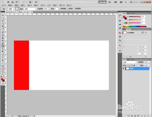反复理解好后,在Photoshop(CS5)中新建一个文件。点击【矩形选框东西】,框选想要框选的部门。点击【填充东西】,将左上方模式选为【前景】,并将前景色设置为:红色。点击选框进行填充;