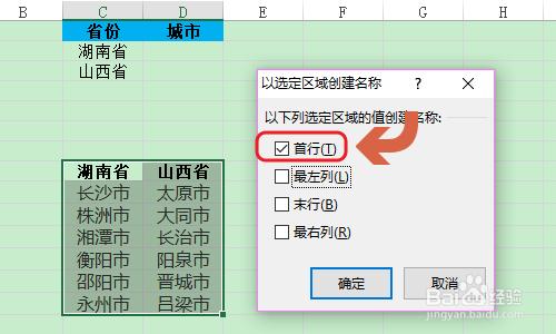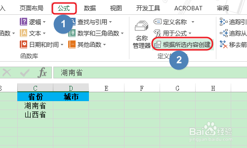 封闭此对话框今后,点击“公式”-“按照所选内容建立”,然后勾选对话框最上方的“首行”,封闭今后选中城市这一列;