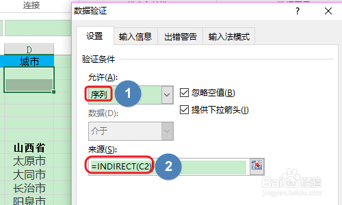 接着再次点击数据验证,不外此次需要将数据验证来历处输入函数“=INDIRECT(C2)”,如许二级联动下拉菜单就建造完当作,如图所示...