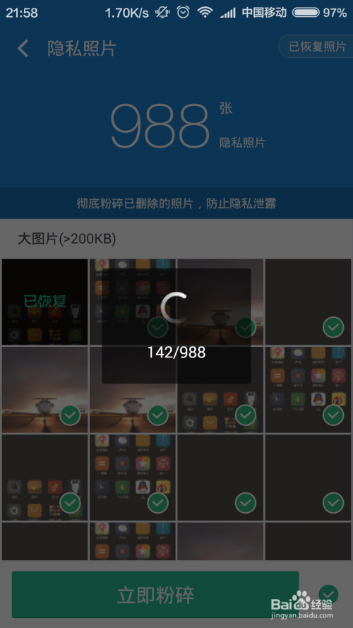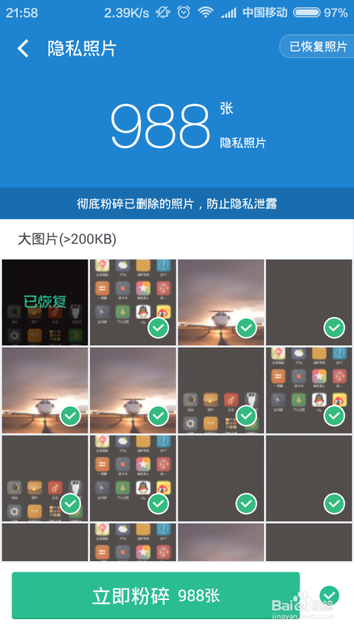 在颠末了漫长的期待之后,页面提醒我们共搜刮到九百多张照片文件,我们点击进入之后即可查看到所有未删除的照片文件啦。