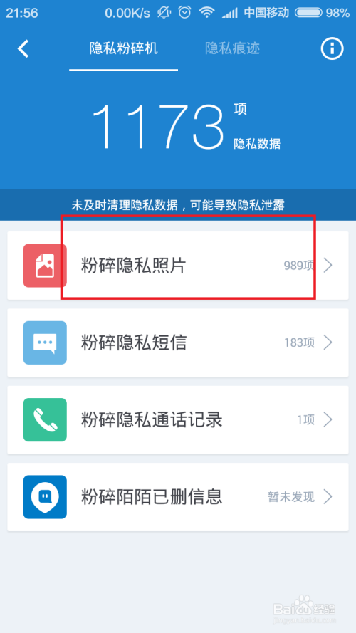 进入隐私功能破坏页面之后,我们就可以用该软件来清理手机中未彻底删除文件的利用陈迹,包罗但不仅限于手机短信、手机通话记实和照片文件等。