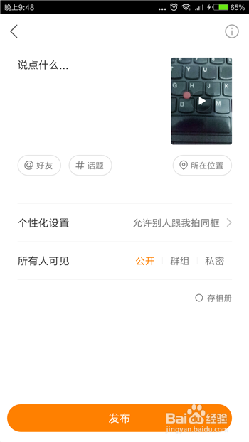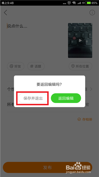至于怎么录制和编纂的小编这里就不多说,我们直接到发布界面去看,进入到发布界面后先点击手机的【返回】按钮。