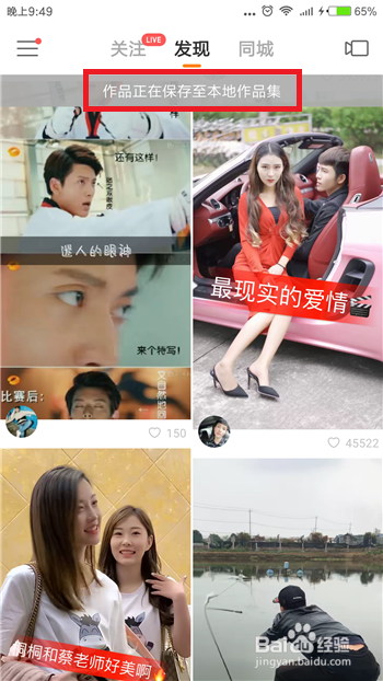 如许保留的视频就是在草稿箱了,系统会主动发返回到首页中并会在顶部提醒【作品正在保留在当地作品集】。