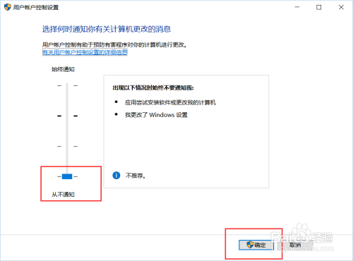 这里我们需要出格注重了,若是我们之前没有点窜过用户账户节制,那么此时不建议大师点窜用户账户节制设置项。可是若是大师之前点窜过了用户账户节制,并将其设置到了最后一项(从欠亨知),那么就需要出格注重了。