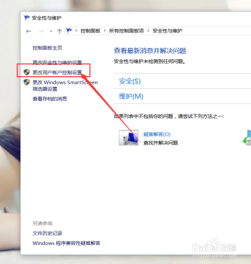 接下来,在打开的页面左侧点击选择”更改用户账户节制设置“按钮,然后在弹出的页面中点击更改用户账户节制。