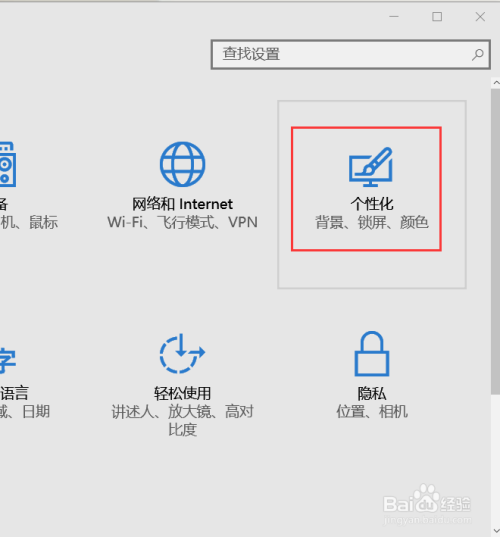 在打开的设置页面中,选择“个性化”菜单页面,在该页面中我们可以设置系统本家儿题以及其他设置项目。