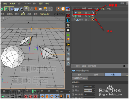 钻石模子的建立这里就纷歧一述说了,可以参考所给的引用经验。这里用钻石和一个平面型搭建一个简单的场景。