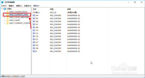 选择第二项 HKEY_CURRENT_USER点击进入。