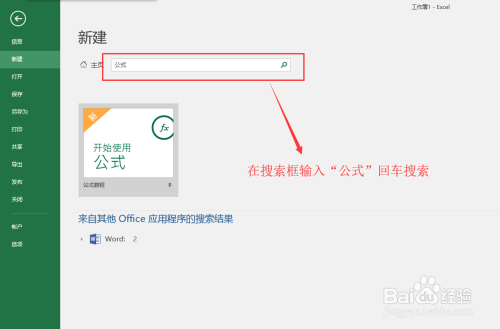 在呈现的新建页面中,会看到有一个搜索框,在这个新建页面的搜索框中输入关头文字“公式”,然后回车进行搜刮。