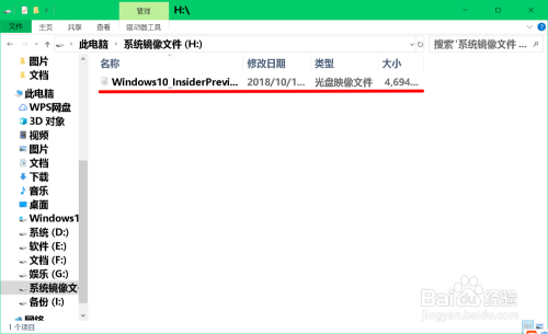 接着在打开的保留方针磁盘的窗口中点击:系统镜像文件 (H:)
