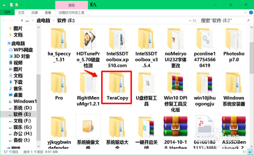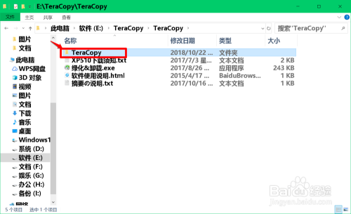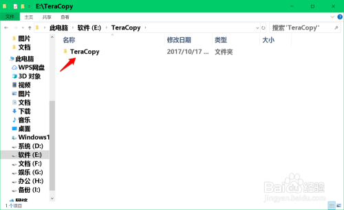 解压压缩文件完当作今后,我们在E:\磁盘中找到并点击打开:Teracopy 文件夹;