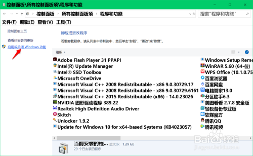 进入节制面板,点击【法式和功能】-【启用和封闭 Windows 功能】;