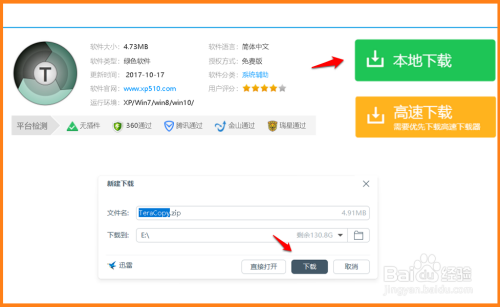 在Teracopy下载页面,我们点击:当地下载,在新建下载对话框中,点击:下载;