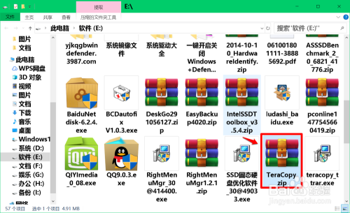 Teracopy下载完当作今后,在磁盘 E:\中找到并左键双击下载的 Teracopy.zip 压缩文件;