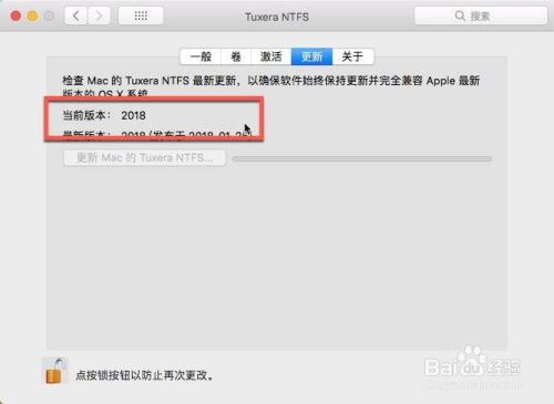 在更新目次下,您可以看到您的版本是当前Tuxera NTFS 2018 Mac最新版本,如下图所示: