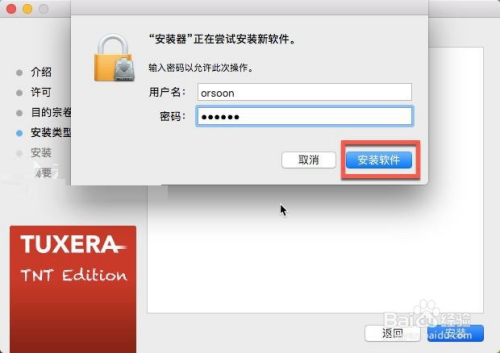 输入电脑开秘密码,点击安装软件,如下图所示:
