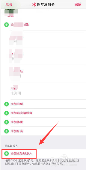 拉到底,点击添加告急联络人,如下图所示
