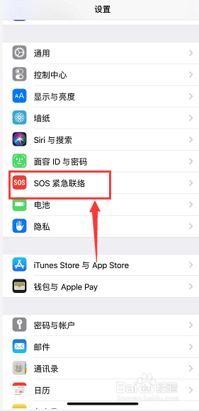 设置中找到SOS告急联络选项卡,如下图所示