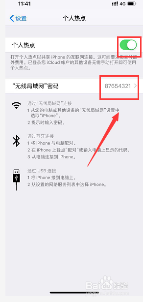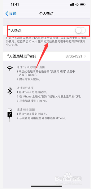 我们打开小我热点后面的开关,点击下面的密码,如下图所示