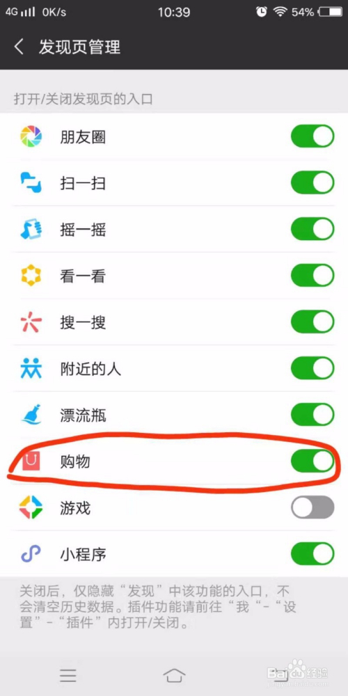 - 若是想把购物放回到发现页,按方才封闭的体例去打开就可以了