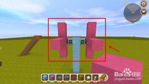 别的一侧同样放置方块,如许风车雏形就完当作了。