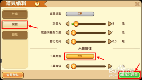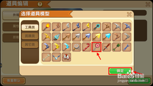 在东西类型中将棒棒糖设置为斧头,其他的一些属性好比东西品级,按照本身的需要进行设置,完当作后点保留。