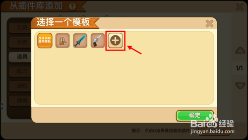 进入后点击+号选择其他模版,在接下来跳出的道具类型窗口中点击铲子图标(东西)。