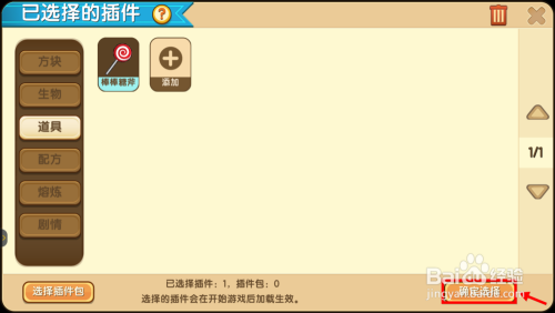 然后点击模子旁边的+号,在新窗口中的东西列表中,选中棒棒糖并确定。