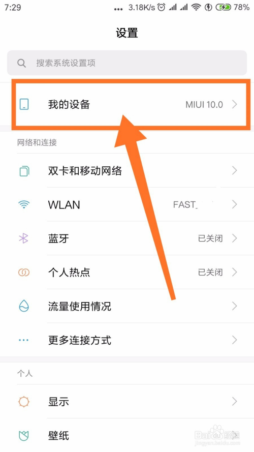 在手机桌面点击【设置】,进入设置后点击【我的设备】。