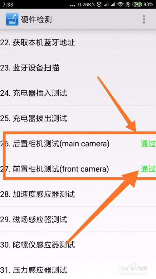 返回到【硬件测试】就能看到后置相机测试已经经由过程了。
