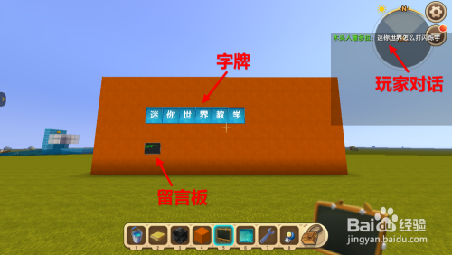 本文以留言板举例,留言板的特点是:可直接放置地面,一次可输入多行文字。留言板放置完毕后,界面最下方呈现输入框。