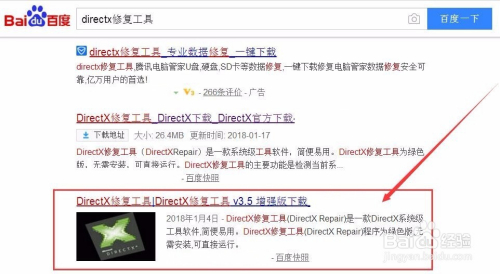 碰到DirectX插件错误信息提醒窗口,一般环境下都考虑DirectX组件丢掉的环境,是以建议大师百度搜刮“DirectX插件修复”关头字,并下载该软件。