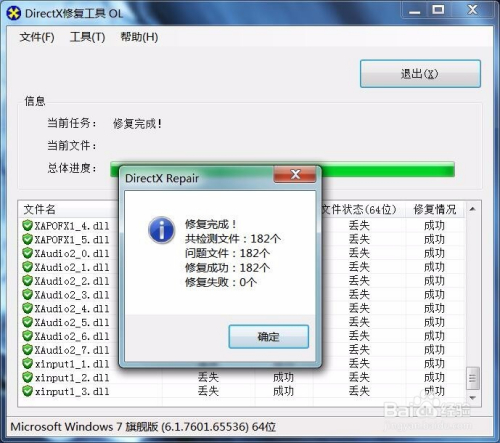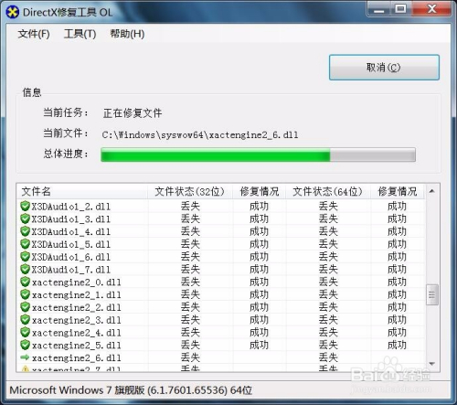 软件在检测过程中,若是发现丢掉的dll文件会主动执行修复法式,将该文件添加到操作系统文件中。