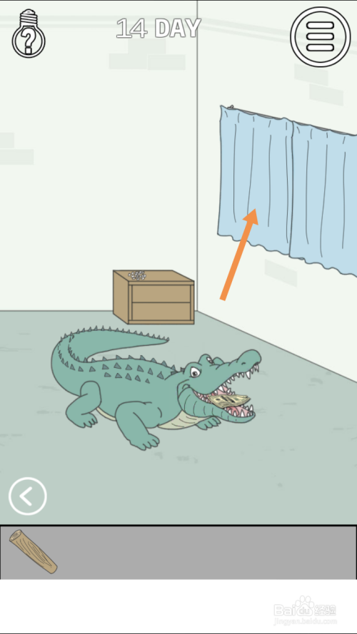 在右边房间里,点击窗帘。窗帘拉开后,将木棍拖动到窗户处。