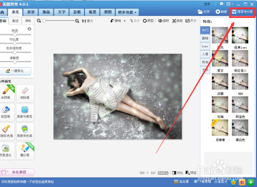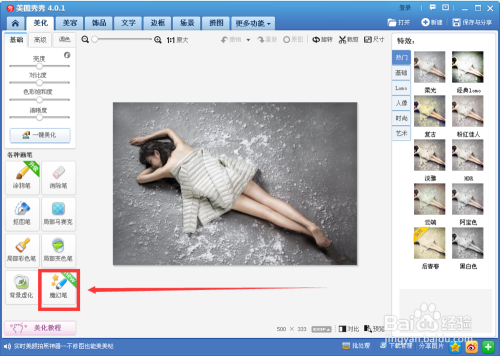 这时,待处置的图片已经显示在软件编纂窗口。单击”各类画笔”里的“魔幻笔”