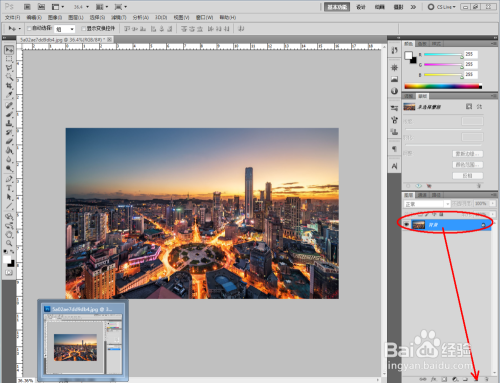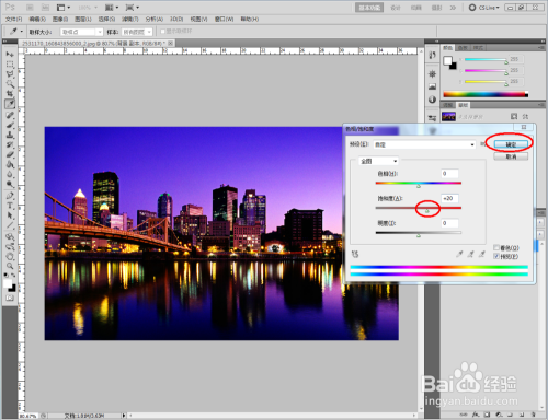 打开第三张我们要调节的照片,将布景图层拉动至新建图层图标处,进行图层复制(注:此步调便于保留原图片不被粉碎)。按住快捷键【Ctrl】+【U】,按图示调整【饱和度】;