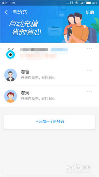 接下里在主动充界面中选择想要主动充值的号码,当然也可以从头添加号码,点击底部的【添加一个新号码】。