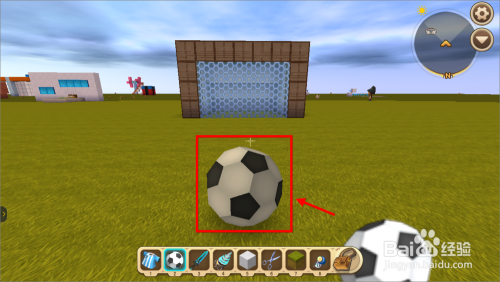 将迷你宿世界进级到可踢球的版本,然后在地面上放置足球。