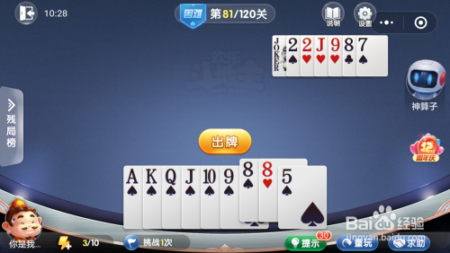 妙算子打出一张8,我打出一张A,接着打出一张K一张J一张10一张5就过关了。