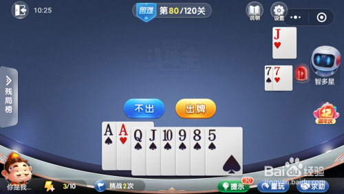 智多星打出一对7,我打出一对A,接着打出8-Q顺子,然后打出一张5就过关了。