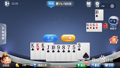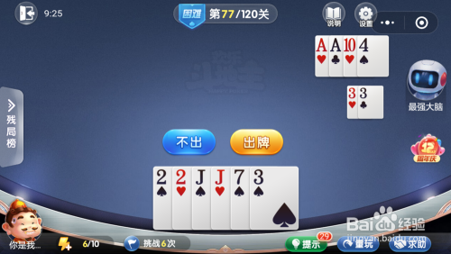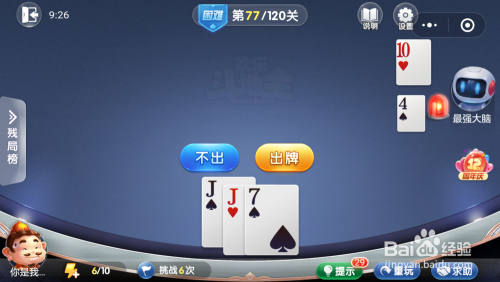 最壮大脑打出一张4,我打出一张J,接着打出一张J一张7就过关了。