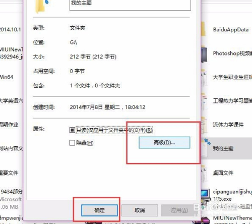 打开该文件夹属性页面中,点击页面右侧的“高级”菜单选项,打开文件夹高级属性页面。