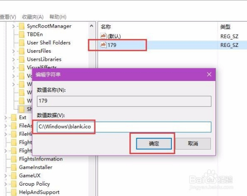 接下来,我们将新建的字符串值定名为“179”,同时将该子项的键值点窜为“C:\Windows\blank.ico”,然后保留对注册表文件的点窜即可。