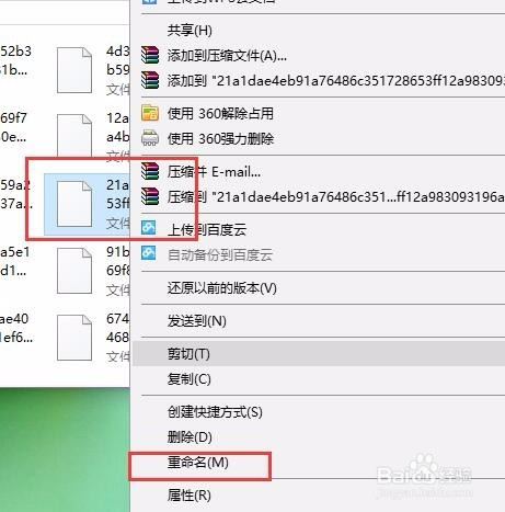 接下来,我们选择此中的某一个文件,然后击右键,在弹出的菜单中选择”重定名“选项,点窜该文件的后缀名为.jpg,文件名称可以肆意点窜。