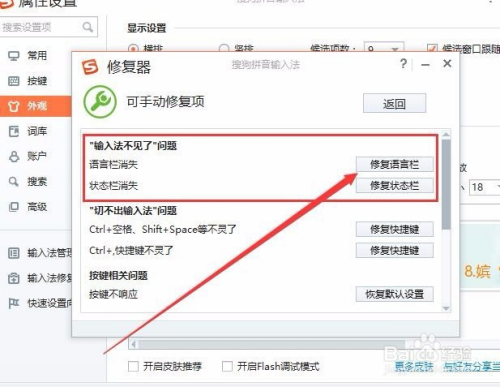 在修复页面中,选择修复“说话栏和状况栏”,点击修复按钮即可修复输入法中碰到的问题,小伙伴们从速尝尝吧。