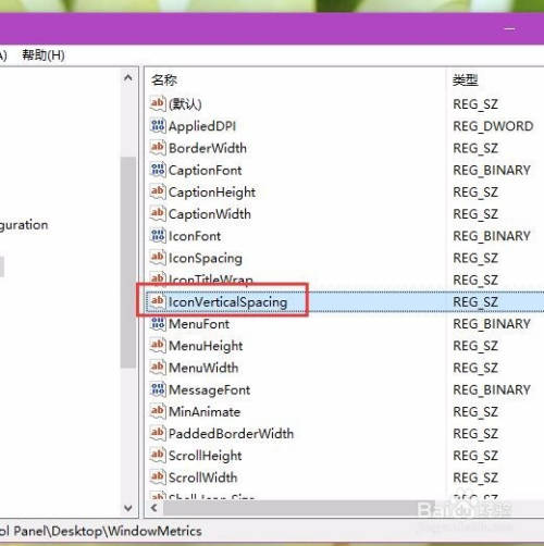 接下来,在打开的WindowMetrics子项中,找到IconSpacing字符串值,双击该字符串值,点窜其键值。