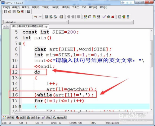 用do-while轮回节制输入文章,前提是不等于句号。
