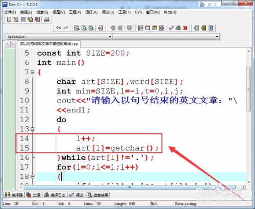 运行法式,输入以句号竣事的英文文章,电脑就会输出最短的单词和单词长度。